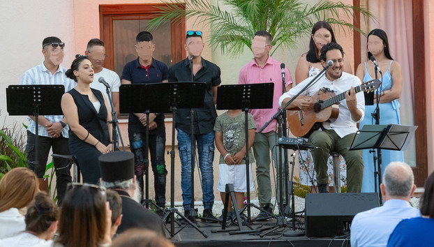 Μετά τους χαιρετισμούς της Κλινικής Διευθύντριας, κ. Τίνας Παύλου, του Εμπνευστού, Ιδρυτού και Προέδρου του Διοικητικου Συμβουλίου της Αγίας Σκέπης, Μητροπολίτη Λεμεσού Αθανάσιου και του εκπροσώπου του Προέδρου της Αρχής Αντιμετώπισης Εξαρτήσεων Κύπρου, ακολούθησε μουσικό πρόγραμμα που ετοιμάστηκε από τα ίδια τα παιδιά που φιλοξενούνται στην Κοινότητα και ακολούθησαν αληθινές μαρτυρίες νεαρών μελών που μοιράστηκαν τις δικές τους ιστορίες, αγγίζοντας τις καρδιές όλων των παρευρισκόμενων.